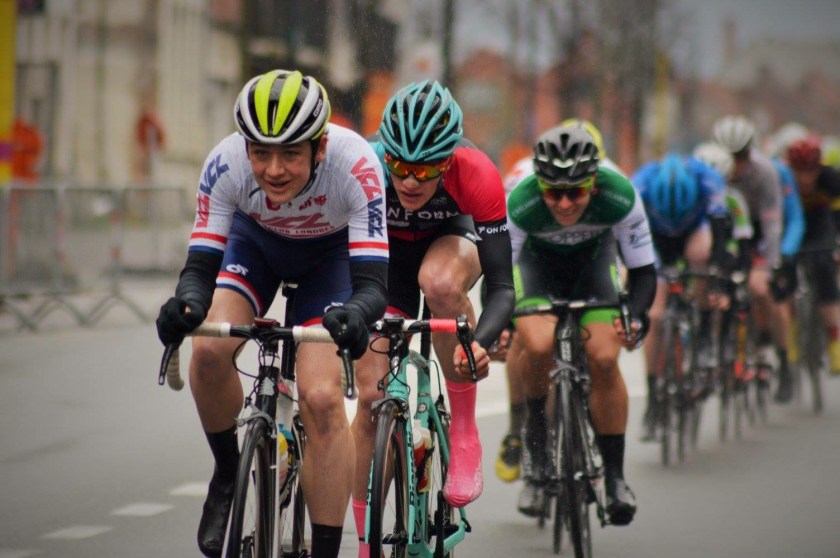 After a good nights sleep, Sunday rolled on. A visit to Ypres and to that good old Frite Shop. I had Bolognese not frites, don’t worry. We arrived at the race with plenty of time to spare, so it was sign on, numbers on and kit on. We were out on the course reccing. The course had a nasty block headwind from the finish, heading up a 4% drag before hanging a left down a narrow technical descent, before taking another left onto a road with a nasty cross wind, then left back on the main road, up a hill, then a swooping left back into the headwind and to the finish line.